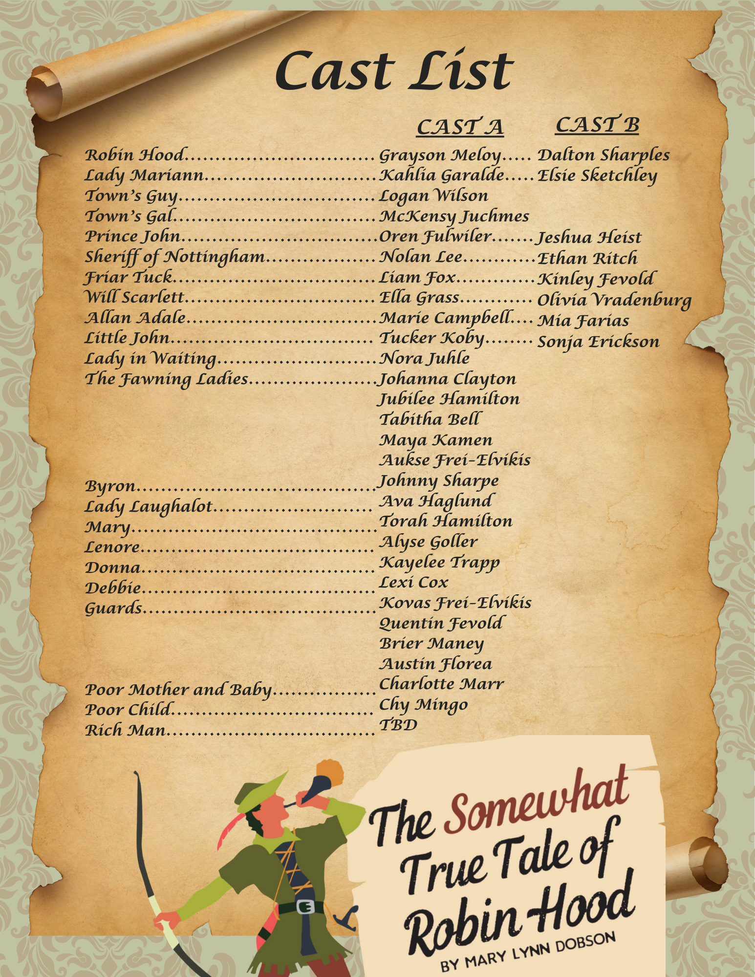 Get ready to leap, lunge, and laugh your way through Sherwood Forest! In this action-packed workshop, students will learn the basics of safe and theatrical stage combat—perfect for our hilarious take on the legend of Robin Hood. From sword fights to silly scuffles, kids will explore timing, teamwork, and how to make battles look bold (but stay safe!). Whether you're a merry man, a villainous sheriff, or a sword-wielding squirrel, this class brings the fun and the flair to every fight scene.